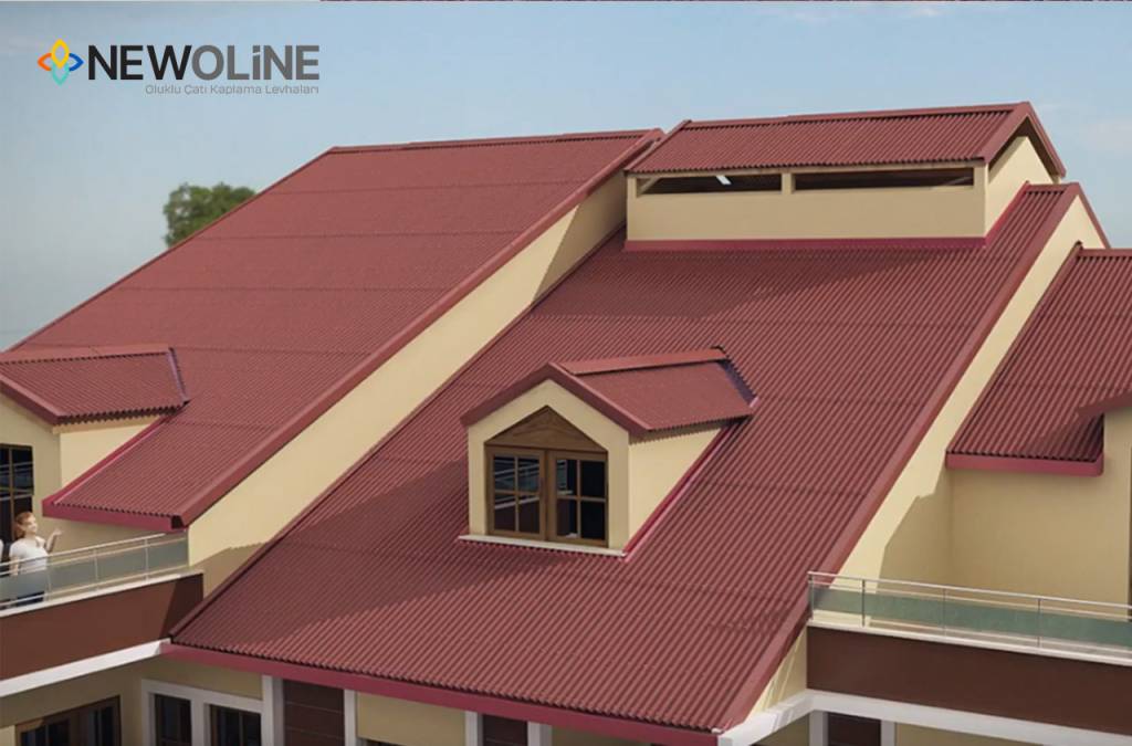 NEWOLINE levhaları, kırmızı, yeşil, siyah, kahverengi renk seçenekleriyle piyasada bulunmaktadır. Mahya, galvanizli monoblok çivi ve oluklu strafor gibi çatı kaplamada ihtiyaç duyulan tüm elemanlar, benzer nitelikte ve formda üretilerek yapı sektöründe güvenilir bir şekilde kullanılmaktadır.