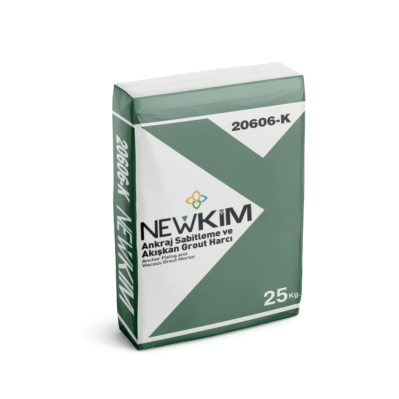 25 kg’lık Newkim Ankraj Sabitleme ve Akışkan Grout Harcı ortalama 5 lt miktarında temiz su bulunan kaba yavaş yavaş dökülerek, düşük devirli bir el mikseri yardımıyla homojen bir kıvama gelinceye kadar yaklaşık 1-3 dk kadar karıştırılmalıdır. Sertleşmekte olan harca su ilave edilmemelidir. Akışkan yapıdaki grout önceden hazırlanmış bulunan kalıbın tek tarafından kesintisiz olarak dökülmelidir. Karışım içersine hava sıkışması engellenmelidir. Kalıbın içerisindeki tüm boşlukların dolmasını sağlamak için, ucu çengel haline getirilmiş çelik bir tel kullanarak yerleştirme yapılmalıdır.