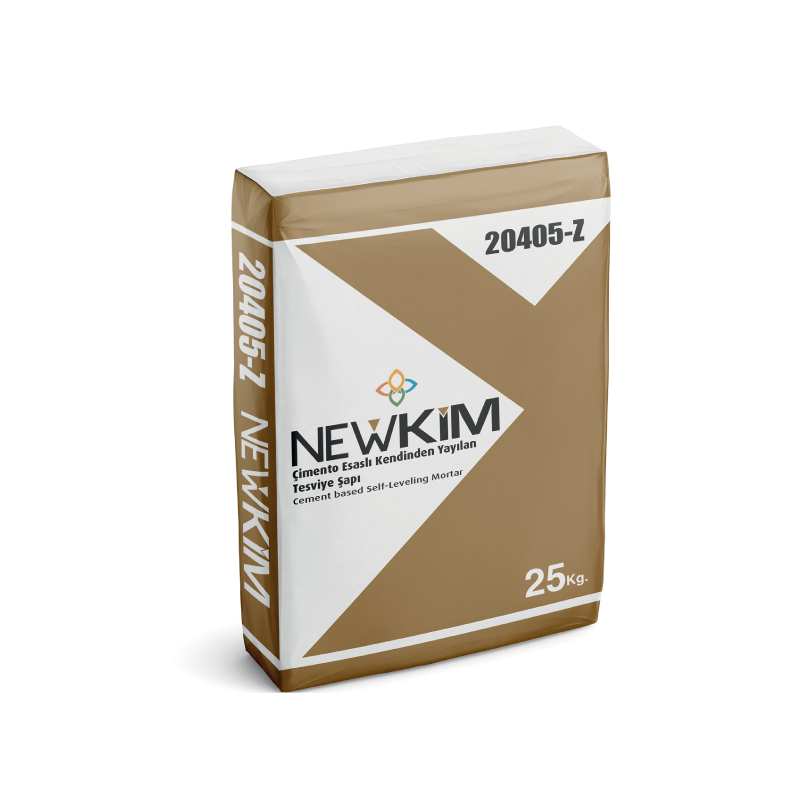 25 kg. Newkim Kendinden Yayılan Tesviye Şapı ortalama 6.5-7 lt. temiz su ilave edilmelidir. Newkim Kendinden Yayılan Tesviye Şapı düşük devirli bir el mikseri yardımıyla homojen bir kıvama gelinceye kadar yaklaşık 3 dakika karıştırılmalıdır. Hazırlanan harç zemine boşaltılmalı ve yüzeyindeki pürüzlerin doldurulması için silme çekilmeldir. Newkim Kendinden Yayılan Tesviye Şapı kendiliğinden yayılır. Kalın bir mala ile ayarlanmalıdır. Yayılan malzeme gerekliyse kirpi rulo ile düzleştirilmelidir. Mikser pompa ile uygulama yapılmaktaysa, malzemenin beraber yayılımını bozmamak için çalışılan alanın genişliği 6 metreyi geçmemelidir.
